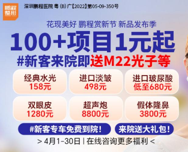 花现美好,鹏程赏新节,新品发布季,来院即送大礼包,100+项目1元起,新客来院即送M22光子等,人气项目特价钜惠,三人同行立减1500,还等什么,抓紧时间来体验吧。