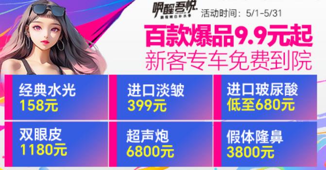 深圳鹏程五月钜惠开始了,预存100得1000,百款爆品项目9.9元起,新客专车免费到院,到院送精美礼品,3人同行减免1500,还等什么,抓紧时间过来体验吧。