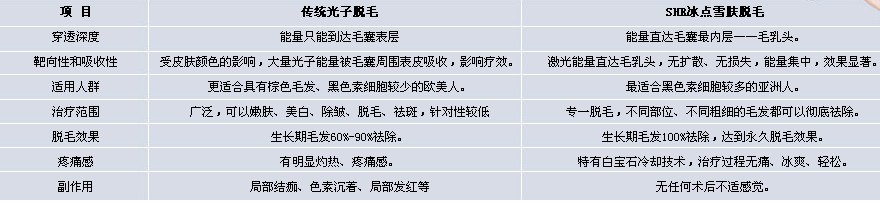 冰点雪肤脱毛特别适合亚洲人肤质,它在光子脉宽、光斑面积、冷却系统、操作系统方面进行革命性技术更新,尤其适合亚洲人 皮肤类型及身体部位,满足不同肤色和粗细、毛色的脱毛需求。针对细软毛发不易脱除的现象,冰点雪肤脱毛的激光对脉宽、光斑面积等设备参数进行全面升级,即便是细软毛发也能一一去除。